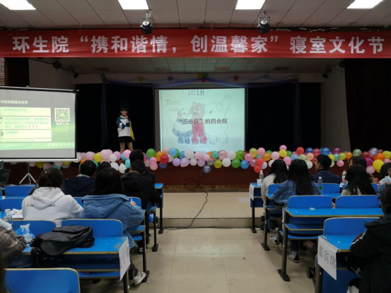 11月18日19:00,由环生院团学联主办的环生院第一届寝室文化节决赛在文科楼模拟法庭隆重举行。本次赛事的评审团由党委书记刘汉红、团委学生会副主席孙岳宏、团委副书记何佳佳、化药院权益保障部部长雷星,新葡的京官网团委学生会各部门部长及18级各班班长、团支书组成。