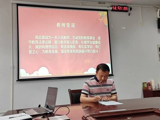 学院教师代表周文科领誓,带领全院教职工重温入职宣誓,增强广大教师的职业荣誉感、历史使命感和社会责任感。