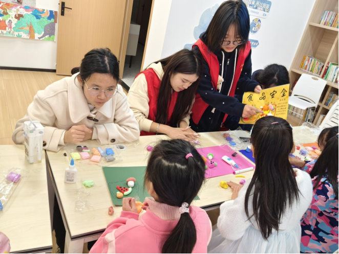 宣讲结束后,志愿者与小朋友们一起制作了相关的黏土手工画,小朋友们看着自己的劳动成果露出了满意的笑容,并和志愿者合影留念。家长们也纷纷表示,此次活动不仅让小孩学到了课外知识,也锻炼了小朋友们的动手能力,为孩子们树立了正确的饮食观念。活动结束后,志愿者们与社区工作人员共同清扫了活动场地,恢复干净整洁的模样。