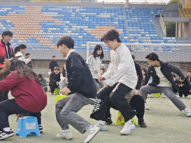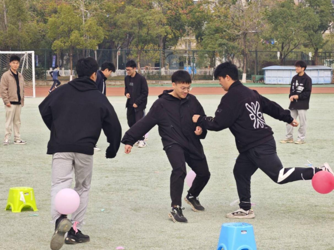 活动集“转个圈圈”“企鹅漫步”“踩气球”“抢凳子”“拔河”五项趣味挑战于一体,同学们踊跃参与,现场热火朝天。活动开场,“转个圈圈”考验着平衡与协作,选手们在旋转中力求稳定,助力团队。“企鹅漫步”时,大家模仿企鹅姿态,模样逗趣,欢笑不断,此项目着重身体控制与团队默契。“踩气球”环节将氛围推至峰巅。“拔河”比赛最为扣人心弦。各班精英组队,赛前队员们斗志昂扬。裁判令下,赛场呼声雷动,班级团队齐心发力,口号嘹亮,队员们咬牙坚持,后仰用力,彰显顽强斗志与团队精神。同学们于欢笑汗水中厚植友谊,推动班级和谐发展。