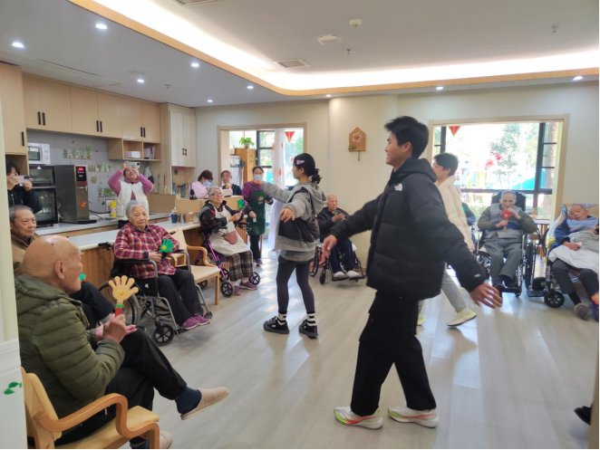 志愿者们带来了丰富多彩的文艺表演,为老年人的生活增添乐趣、给养老院注入青春气息与活力。他们首先以歌声传递温情,演唱了《恰似你的温柔》《我和我的祖国》等六首脍炙人口的歌曲。这些歌曲不仅旋律优美,更蕴含着深厚的情感。除了歌声传递温情外,志愿者们还带来了太极表演。太极作为中国传统文化的瑰宝之一,其刚柔并济、内外兼修的特点深受人们喜爱。舞蹈《好运来》更是将现场氛围推向了高潮。志愿者们身着艳丽的服装,舞姿翩翩,充满了青春活力。老人们也被这份热情所感染,挥动着双手,脸上洋溢着灿烂的笑容,整个现场充满了欢乐与温馨,仿佛变成了一个欢乐的海洋。