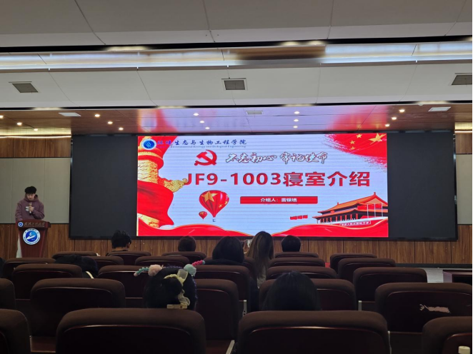 现场展示的还有JF1-416、JF1-108、JF9-1011及JF9-1003等十佳党员示范寝室的代表,他们带着满腔热忱,向大家详尽展示了各自寝室的独特建设风貌。这些代表们依次从寝室的学习氛围、成员在学科竞赛中的卓越表现、所荣获的诸多荣誉,以及积极参与的志愿服务等多个角度进行了深入汇报。他们以身作则,不仅展现了党员的先锋模范作用,更以此激励低年级的学弟学妹们积极向党组织靠拢,共同追求卓越,砥砺前行。