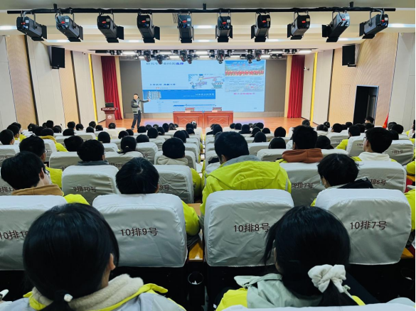 在报告厅,江吉周为学生做了《苍天不负苦心人》专题讲座,他通过PPT和视频展示了自身的求学生涯和二维碳基材料基本情况,以大量的实验数据和理论分析展望了二维碳基材料在光电催化领域的应用前景。通过自身的求学之路的不易勉励高三学生们要且行且珍惜,珍惜当下时光,努力奋斗,坚持不懈。同时,高新技术的展示也为学生们打开了尖端科学的大门。孙奕为学生进行《生涯规划与志愿填报》专题讲座,建议学生尽早熟悉政策、了解自身、努力奋斗。