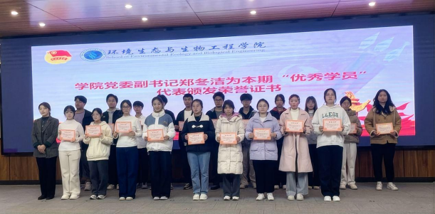 郑冬洁为优秀学员代表颁发荣誉证书,并希望全体学员要始终牢记青年马克思主义者的初心和使命,用实际行动践行党的宗旨,充分发挥学生干部的先锋模范作用,将个人理想同国家发展紧密结合起来,成为一名有作为、有贡献的青年。