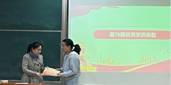 会上,孔海霞书记为第70期入党积极分子培训班优秀学员颁发证书。