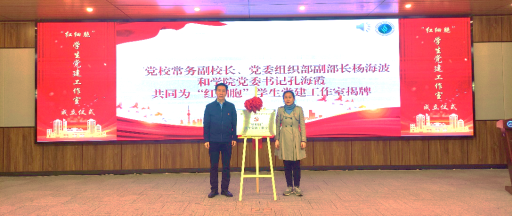 开班仪式在慷慨激昂的《国歌》中拉开序幕。杨海波和孔海霞共同为“红细胞”学生党建工作室揭牌。